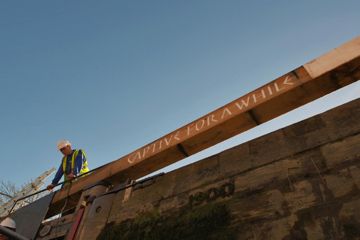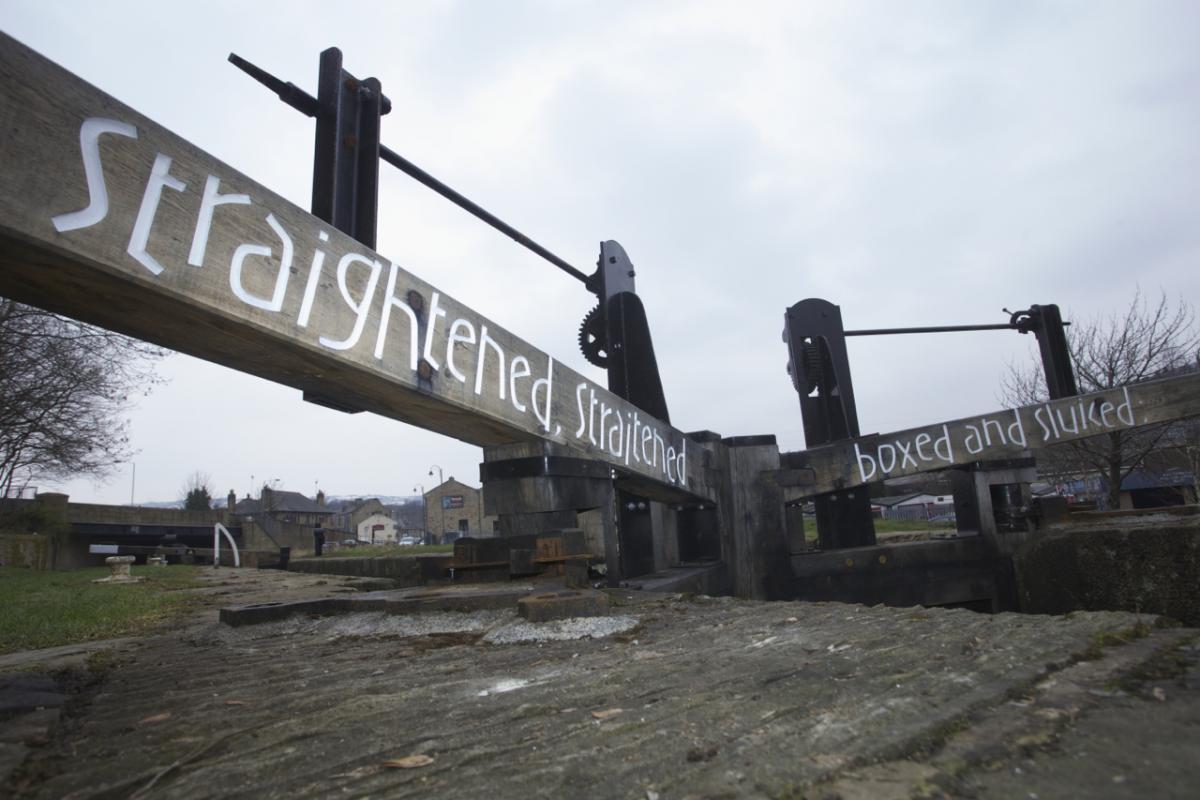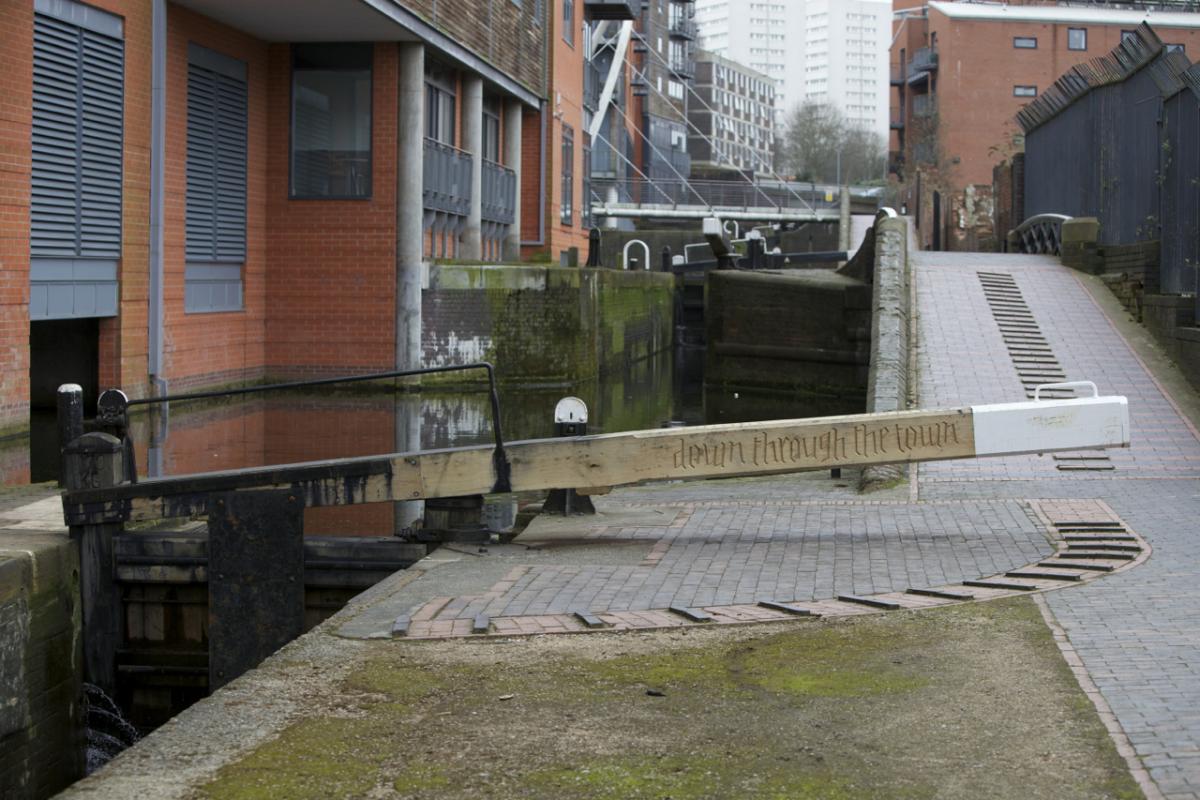 Commissioned by The Canal and Rivers Trust - The Commemorative Lockgates Project is part of CRT’s programme of contemporary art on the waterways. Working with poets Roy Fisher, Jo Bell and Ian McMillan to develop a series of slogans rendered onto the balance beams of new replacement lock gates. The work was carved, gilded and painted at the two CRT lock gate manufacturing workshops at Stanley Ferry, Wakefield and Bradley, Wolverhampton. Lock Locations: Gargrave, N. Yorks. Milnsbridge, W.Yorks, Birmingham, Hillmorton, Warwicks. Installed by CRT.